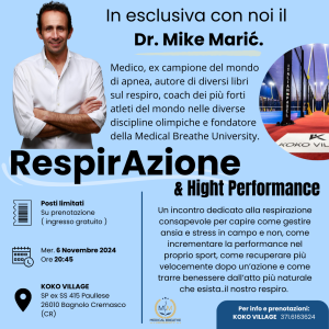 Ti aspettiamo il 6 Novembre alle ore 20.45 per scoprire i segreti del respiro con il Dr. Mike Maric.